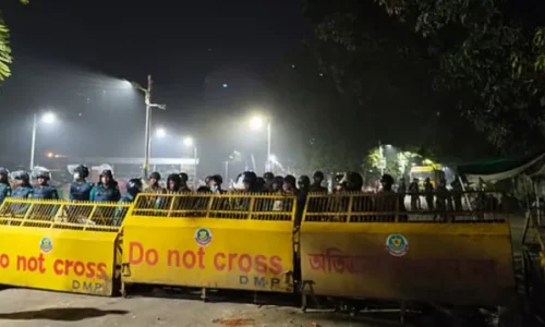 সতর্ক অবস্থানে আইনশৃঙ্খলা বাহিনী ঘিরে রেখেছে ৩২ নং বাড়ি